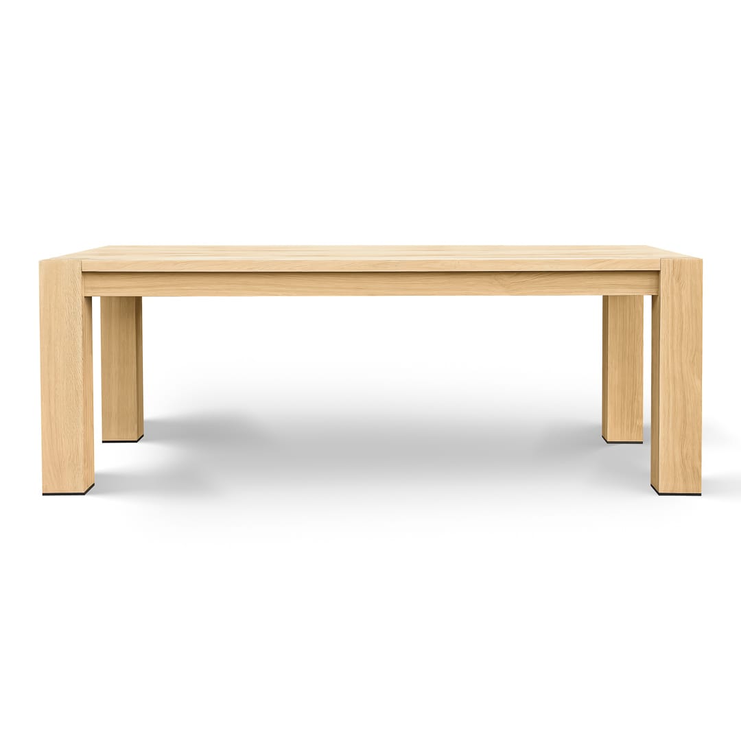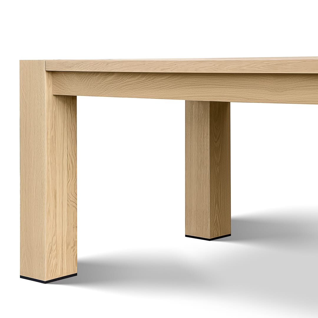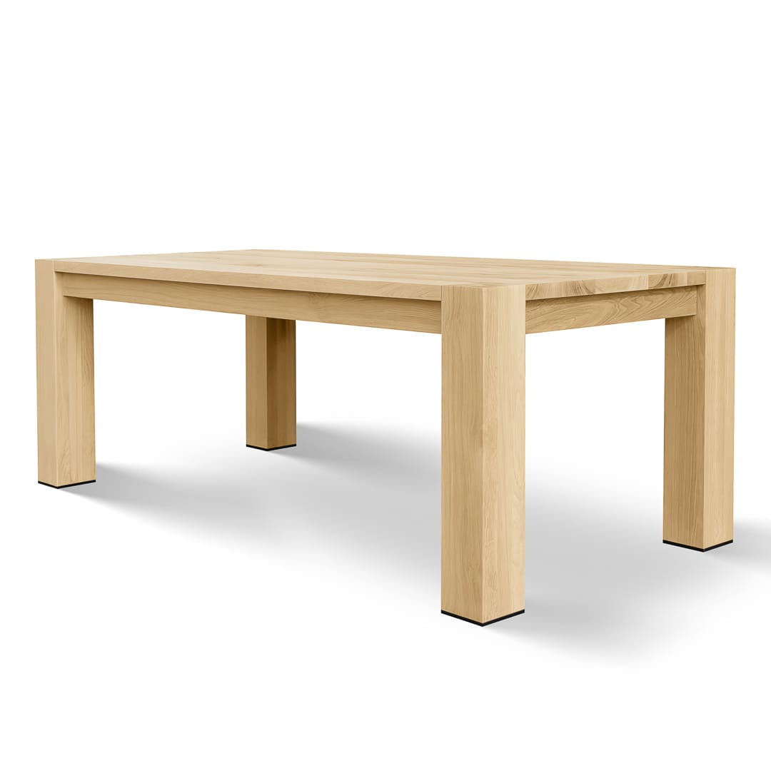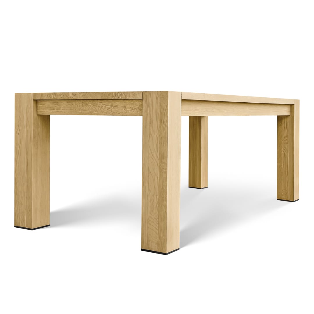 Stół HOME charakteryzuje się masywną bryłą w całości wykonaną z polskiego drewna dębowego. Opiera się na masywnych nogach o przekroju 14 x 14cm i zakończonych czarnymi elementami spełniającymi rolę podstawek. Blat stołu ma grubość 40mm. Drewno wykorzystane do budowy tego stołu pochodzi z polskich lasów i jest przygotowywane sezonowaniem i suszeniem przez około 24 miesiące zanim trafi do nas.