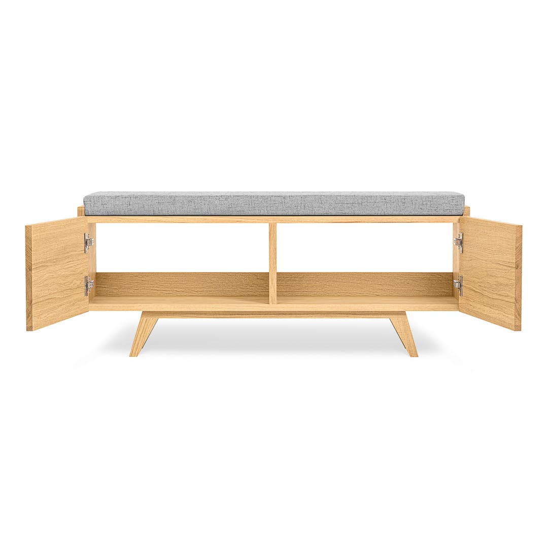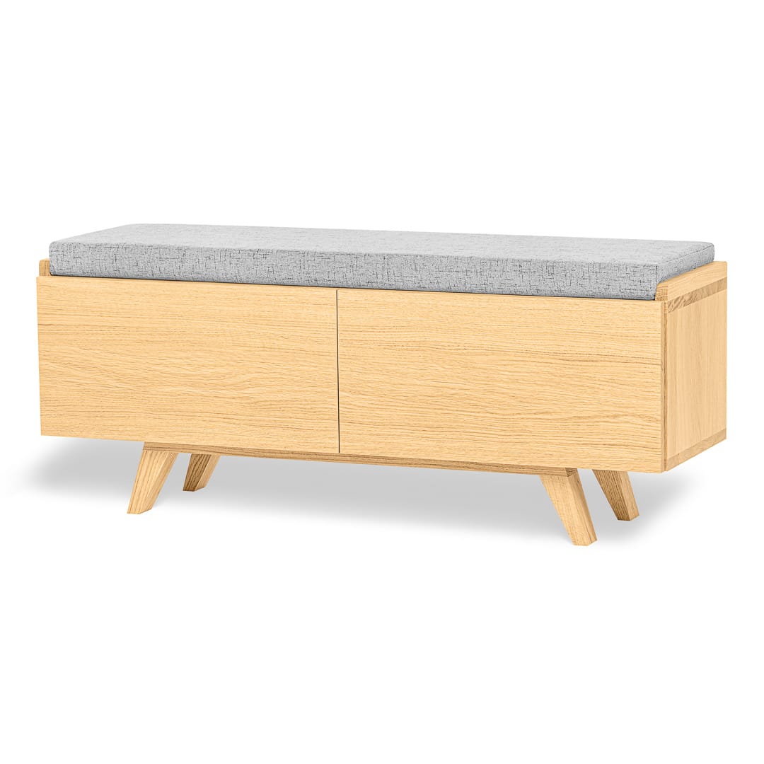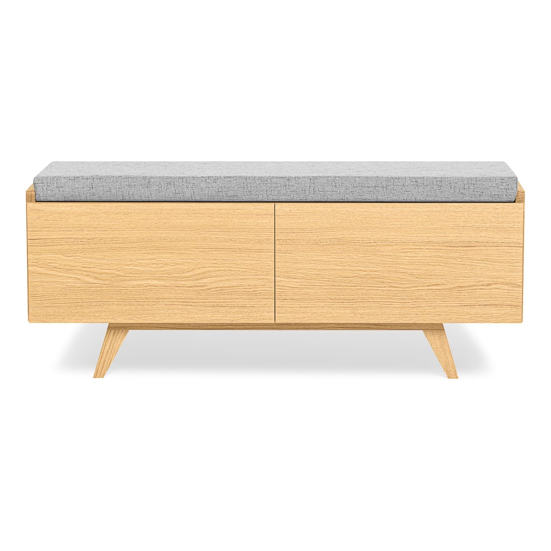 Możliwość personalizacji wymiarów ławki i kolorów poduszki sprawia, że ławka z powodzeniem może zagościć w każdym pomieszczeniu. Zaletą jest również wolna przestrzeń pod ławką którą także można swobodnie wykorzystać jako dodatkowe miejsce do przechowywania butów. Ławka może być wykonana z „plecami” lub częściowo bez dla lepszej wentylacji wnętrza. Tip-on czyli drzwi otwierane na przyciśnięcie, zawiasy Blum z cichym domykiem i pokaźna przestrzeń do przechowywania, która można dodatkowo wyposażyć w półki – wszystkie te zalety świadczą o funkcjonalności ławki Otto.