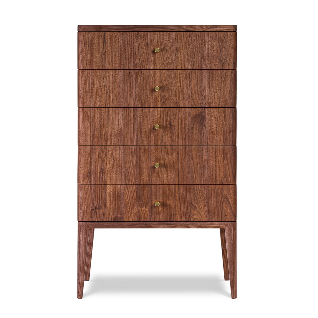 Smukła i elegancka komoda TOKIO TALL wykonana z litego drewna orzecha amerykańskiego.
