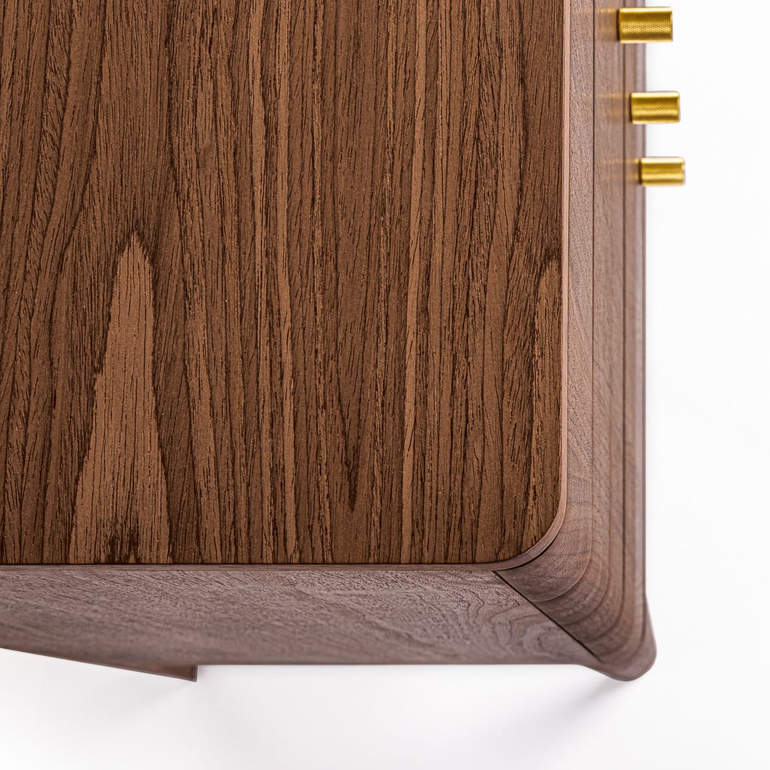 Wyjątkowy, a zarazem praktyczny design, który z pewnością będzie ozdobą pomieszczenia. Co czyni ją tak wyjątkową? Dbałość o szczegóły i estetyka wykonania. W połączeniu z litym drewnem orzecha amerykańskiego tworzą harmonijny mebel z nowoczesnym akcentem. Delikatnie zaokrąglone linie kolekcji TOKIO uzupełniają całą formę.