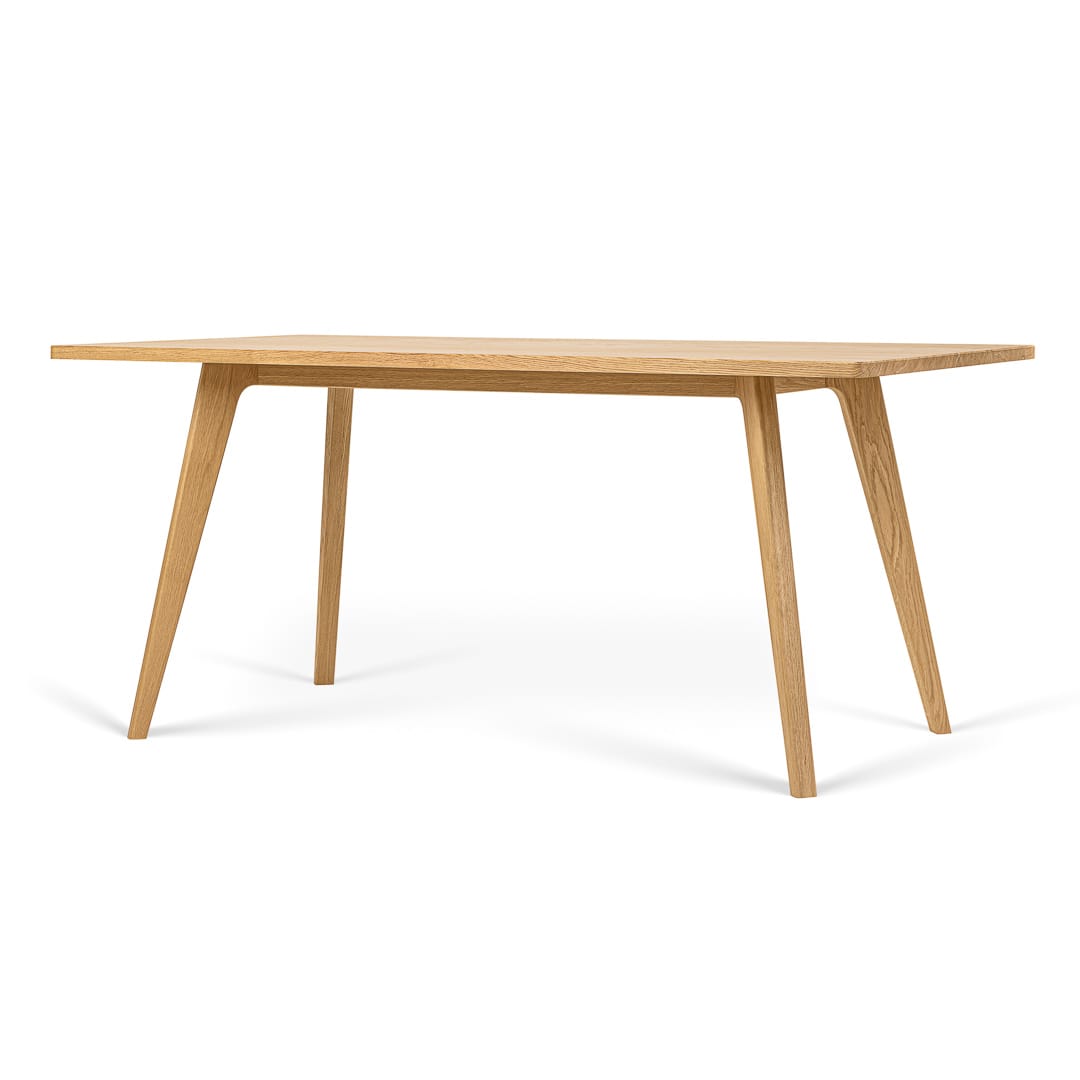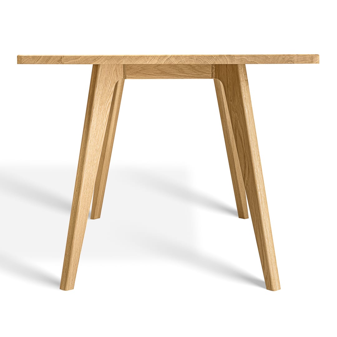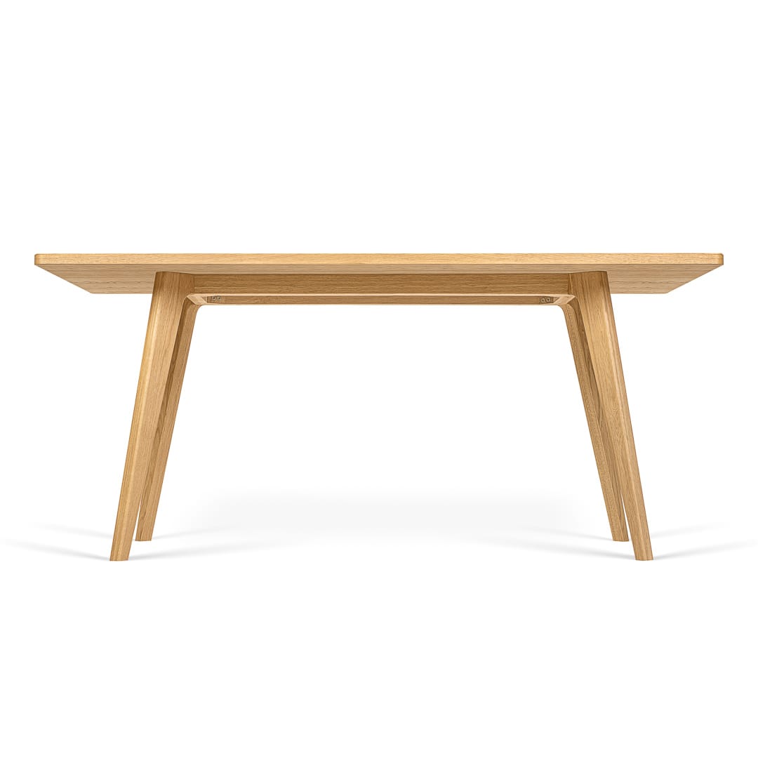 Delikatnie nachylone nogi ku sobie, połączone z dębowym blatem sprawiają, że stół TOKIO to fajny wizualnie mebel. Współgrające ze sobą zaokrąglone elementy blatu i ramy podkreślają również jego spójność i przyjemny charakter.