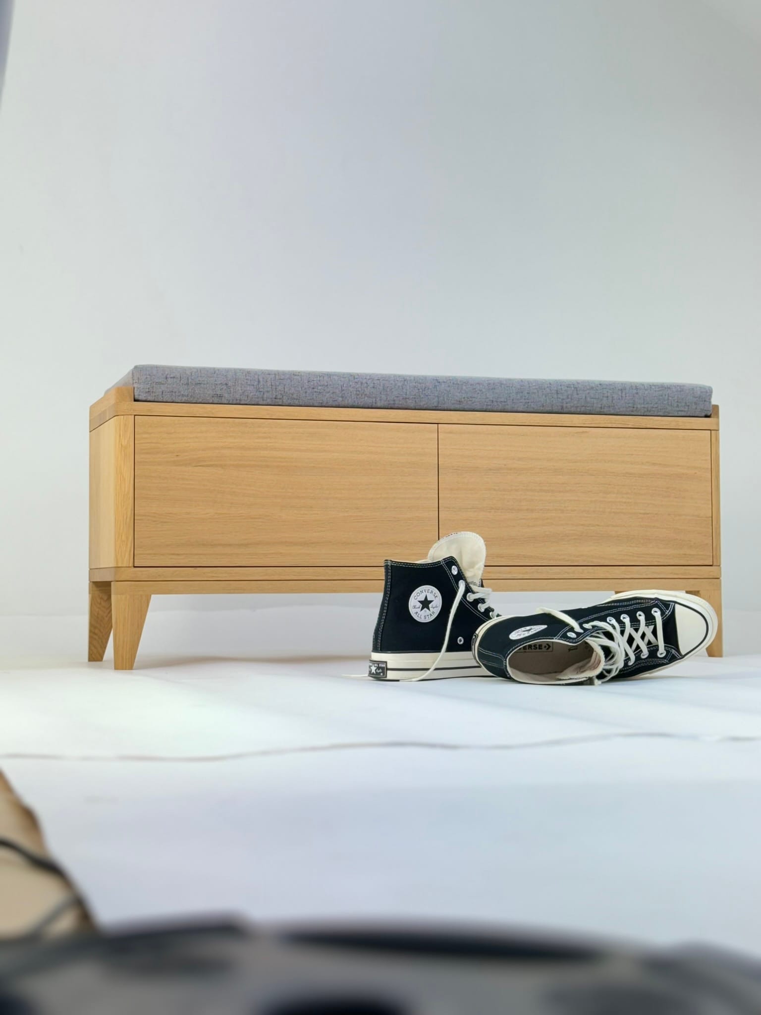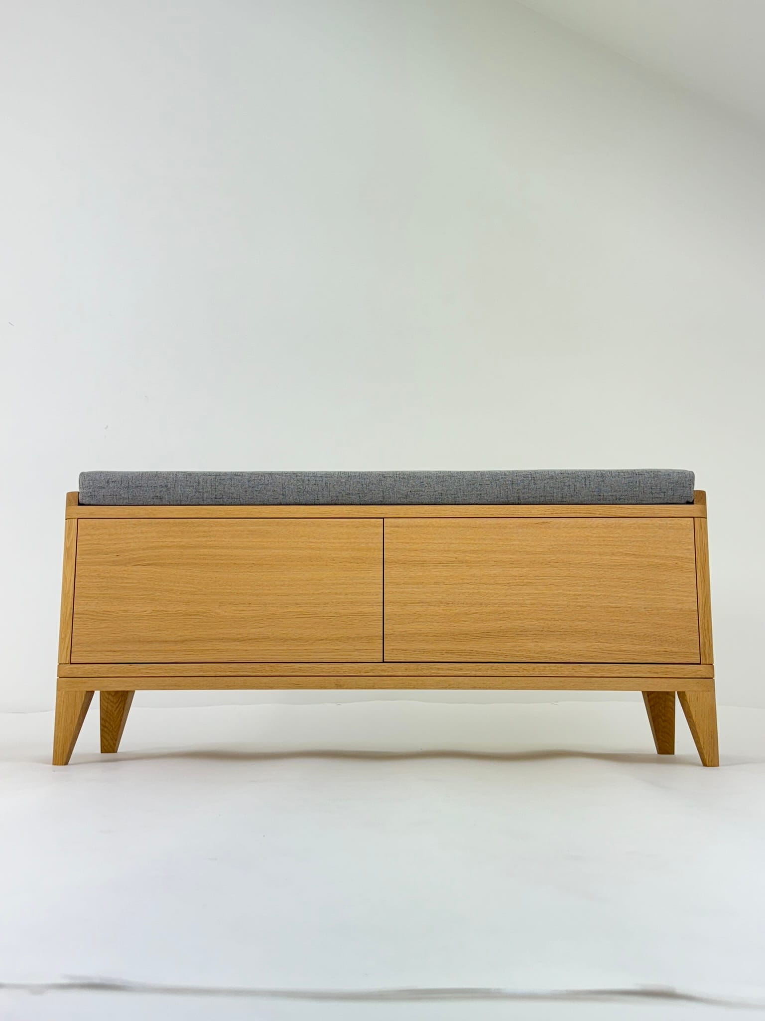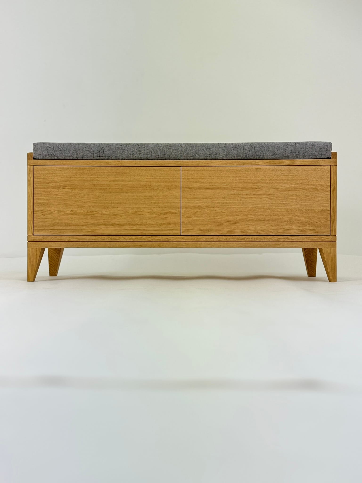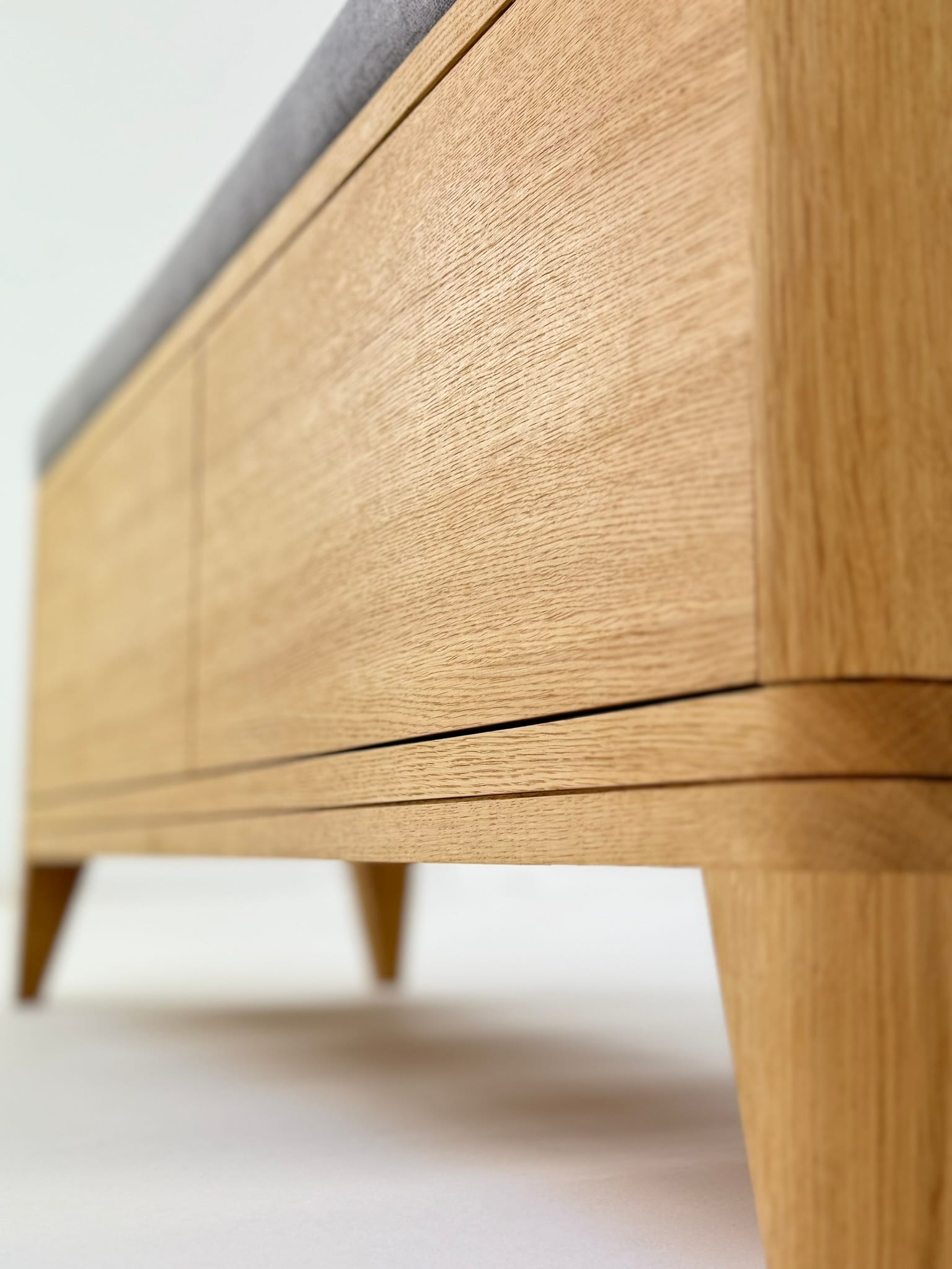 Smukła i elegancka ławka TOKIO 110 to funkcjonalny mebel przyciągający wzrok. Swoim ciekawym kształtem i delikatnymi zaokrągleniami idealnie wpasuje się w nowoczesne wnętrze. Drobne detale, zaokrąglone uchwyty i wcięcia przekonują do siebie wpływając na jej wyjątkowość. Ta szafka charakteryzuje się ręcznym i dokładnym wykonaniem z najlepszego drewna – polskiego dębu certyfikowanego.